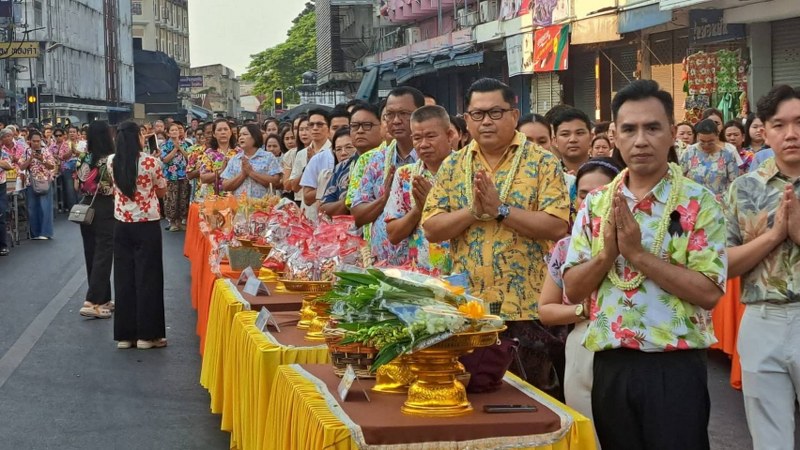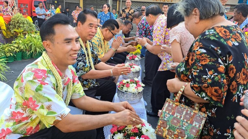 โดยขอให้ทุกคนมีความสุขในเทศกาลปีใหม่ไทยและเล่นน้ำสงกรานต์กันอย่างมีสติ พร้อมกับขอให้ผู้ที่จะต้องเดินทางกลับไปทำงานก็ขอให้เดินทางด้วยความปลอดภัย ใช้รถ ใช้ถนนด้วยความระมัดระวังปฏิบัติตามกฎหมายจราจร จากนั้นผู้ร่วมพิธีได้ร่วมกันทำบุญตักบาตรข้าวสารอาหารแห้งแด่พระสงฆ์ สามเณร และรับน้ำพระพุทธมนต์ หลังจากนั้นผู้ว่าราชการจังหวัดลพบุรีได้นำผู้ร่วมพิธีสรงน้ำพระและรดน้ำขอพรผู้ว่าราชการจังหวัดลพบุรี