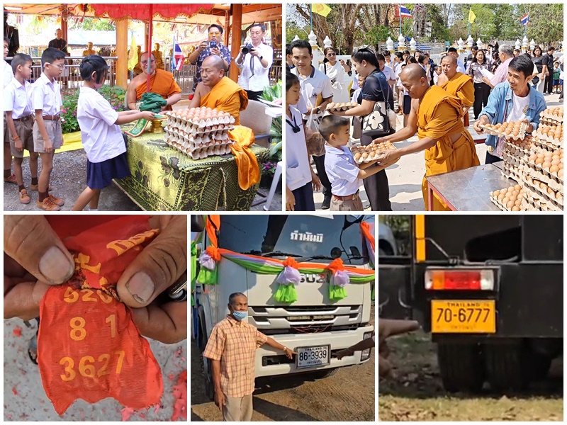 ผู้ร่วมบุญต่างลุ้นเลขหางประทัด เบิกฤกษ์ ซึ่ง ได้เลข 520, 81,3627 นอกจากนี้ยังมีเลขทะเบียนรถเครนที่มายกพระประธาน 86, 3939, 70, 6777 ตัวเลขดังกล่าวต่างนำเอาไปเสี่ยงโชคกันในงวดนี้ ในการนี้พระครูสุตาภิวัฒน์ (หลวงพ่อมหาเหวียง) เจ้าอาวาสวัดหนองยาว ได้มอบทุนการศึกษาให้กับนักเรียน จำนวน 41 โรงเรียน ทุนละ 500 บาท รวม 143 ทุน รวมเป็นเงินทั้งสิ้น 71,500 บาท และแจกไข่ไก่ให้กับนักเรียนและชาวบ้านที่มาร่วมงานคนละ 1 แผงหรือคนละ 30 ฟอง รวมทั้งหมดจำนวน 10,000 ฟอง