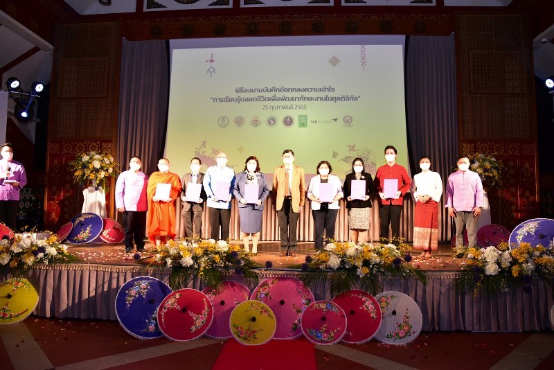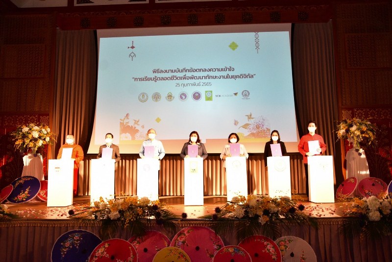 ภายในงานยังได้มีพิธีลงนามบันทึกความเข้าใจ (MOU) ระหว่างวิทยาลัยการศึกษาตลอดชีวิต (มช.),(วช.), กรมกิจการผู้สูงอายุ, (กศน.),เทศบาลเชียงใหม่,เครือข่ายโรงเรียนผู้สูงอายุ 17 จังหวัดภาคเหนือ และกลุ่มงาน SCB Academy เพื่อขับเคลื่อนการดำเนินงานในการส่งเสริมสนับสนุนการวิจัยและนวัตกรรมการเรียนรู้ตลอดชีวิตเพื่อพัฒนาทักษะงานในยุคดิจิทัล โดยให้เกิดการเตรียมความพร้อมในการเข้าสู่สังคมสูงอายุของประเทศไทย