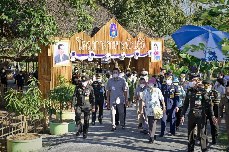 โอกาสนี้ได้ทอดพระเนตรแปลงผลิตเมล็ดพันธุ์พระราชทาน แปลงผักมณฑลทหารบกที่ 310 รวมถึงแปลงผักสมุนไพรและการผลิตลูกประคบสมุนไพร ทรงรับฟังรายงานการดำเนินงานโครงการทหารพันธุ์ดีของหน่วย การขยายผลโครงการทหารพันธุ์ดี “ชุมชนเบิกบาน อาหารปลอดภัย” แก่ชุมชนเครือข่ายหรือครอบครัวนักเรียนที่อยู่ในพื้นที่ห่างไกลและหมู่บ้านในพื้นที่ตะเข็บชายแดน