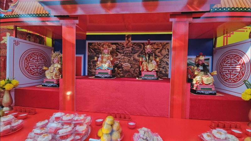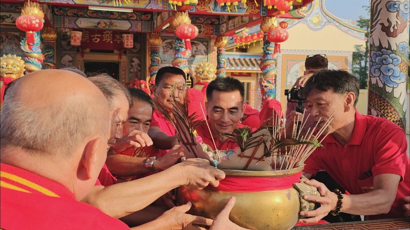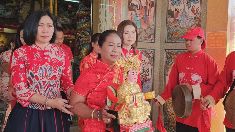 ขณะที่ในช่วงเช้าทางคณะกรรมการมูลนิธิร่วมมิตร ได้มีการประกอบพิธีอัญเชิญเทพเจ้าไทส่วนเอี๊ยจากโรงเจมายังศาลเจ้าปุงเฒ่ากง-มา เพื่อเข้าร่วมขบวนอัญเชิญเทพเจ้าในศาลเจ้า