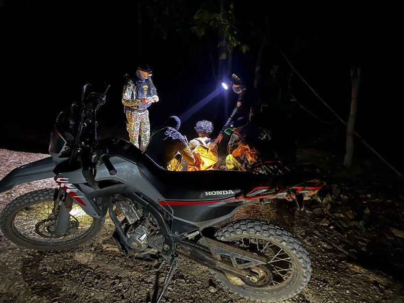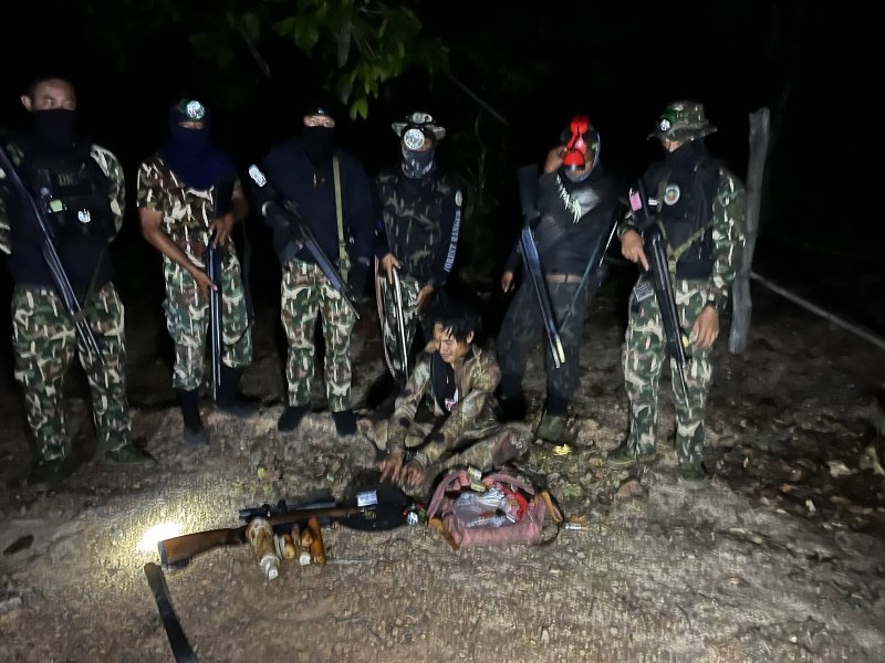 ต่อมาเวลาประมาณ 01.30 น. คณะพนักงานเจ้าหน้าที่ตรวจพบแสงไฟรถจักรยานยนต์ จำนวน 2 คัน ห่างจากจุดที่เจ้าหน้าที่กำลังเดินลาดตระเวนอยู่ระยะห่างประมาณ 900 เมตร กำลังขับขี่มาตามถนนลำลอง ในพื้นที่ป่าเขตอุทยานแห่งชาติผาแดง มุ่งหน้ากลับเข้าไปยังหมู่บ้านแกน้อย ซึ่งจุดที่พบแสงไฟรถจักรยานยนต์นั้น ใกล้เคียงกับบริเวณที่ได้รับแจ้งจุดความร้อน (Hotspot) เมื่อวันที่ 19 เมษายน 2569 จำนวน 2 จุด ช่วงเวลา 02.18 น. ระยะห่างประมาณ 400 เมตร เจ้าหน้าที่จึงได้กระจายกำลังดักซุ่มเพื่อรอทำการตรวจสอบ บริเวณพิกัด 47 Q 477306 E 2173154 N เมื่อรถจักรยานยนต์ทั้ง 2 คันขับขี่มาใกล้ถึงบริเวณที่เจ้าหน้าที่ดักซุ่มอยู่ พบว่าเป็นบุคคลเพศชาย จำนวน 2 คน สะพายอาวุธปืนคนละ 1 กระบอก แต่เนื่องจากผู้ต้องหาอาจสังเกตุเห็นเจ้าหน้าที่ที่กำลังดักซุ่มอยู่ ทำให้ไหวตัวทัน จึงได้เลี้ยวรถจักรยานยนต์ขับขี่หลบหนีกลับเข้าไปในพื้นที่ป่าอย่างรวดเร็ว เจ้าหน้าที่พยายามวิ่งไล่ตามไปจนกระทั่งสามารถจับกุมผู้ต้องหาได้ 1 ราย พร้อมรถจักรยานยนต์ จำนวน 1 คัน ส่วนผู้ต้องหาอีก 1 ราย สามารถหนีการจับกุมไปได้