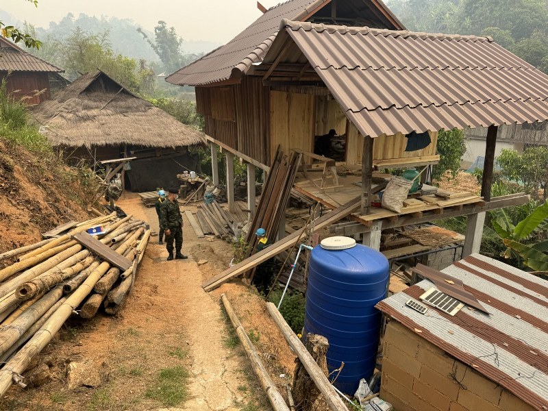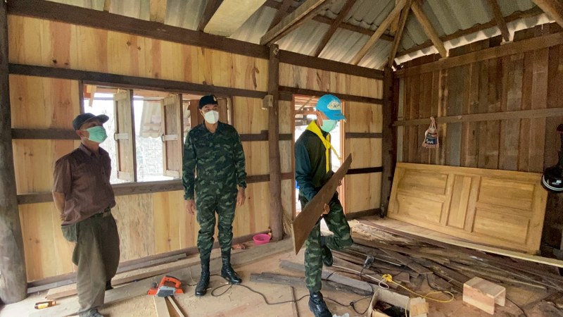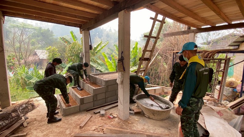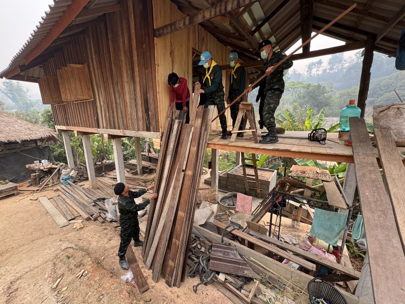 มณฑลทหารบกที่ 37 พร้อมกำลังพลจิตอาสาพระราชทาน จัดกิจกรรม “มอบรอยยิ้ม ผ่าน 2 มือ 1 หัวใจ สู่หยาดเหงื่อ เพื่อประชาชน” ด้วยการช่วยสร้างบ้านพักอาศัยให้กับประชาชนที่มีฐานะยากจน บ้านจะหา หมู่ 11 ตำบลป่าแดด อำเภอแม่สรวย จังหวัดเชียงราย