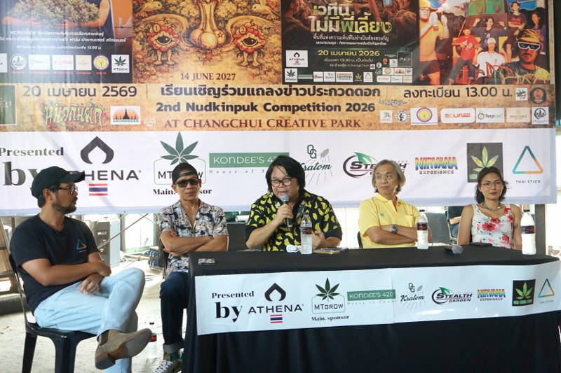 เมื่อวันที่ 20 เมษายน 2569 ที่ช่างชุ่ย Creative Park : กลุ่มหนัดกินผักแถลงข่าวการจัดงาน Nudkinpuk Flower Competition 2nd 2026 Presented by Athena Thailand เตรียมจัดงานใหญ่ 13-14 มิถุนายน 2569 ณ ช่างชุ่ย Creative Park เปิดพื้นที่กลางของวงการกัญชาไทย แลกเปลี่ยนองค์ความรู้ครบทุกมิติ ชูแนวคิด “คุณภาพดอก” สู่มาตรฐานสากล
