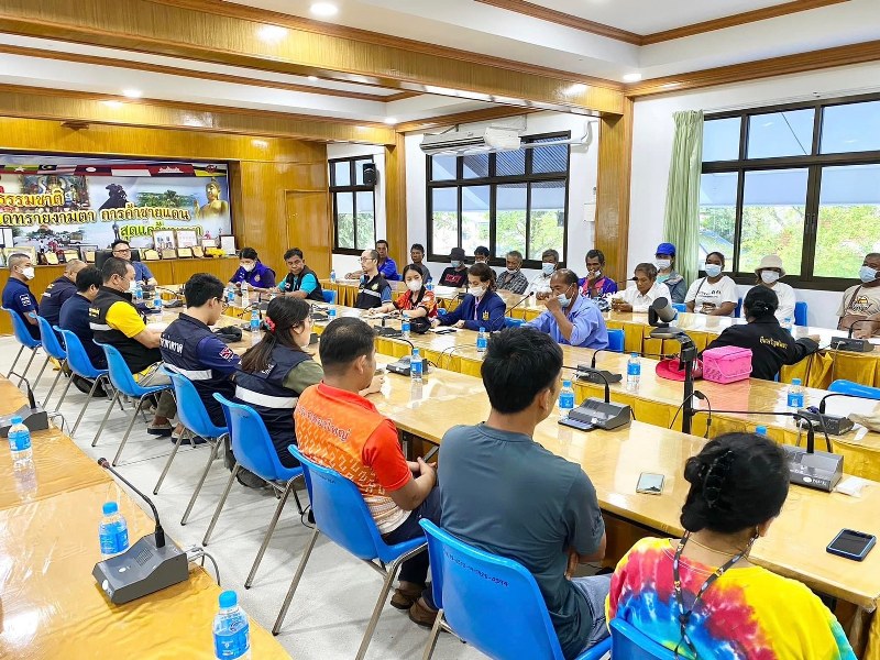 วันที่ 29 มิถุนายน 2566 เวลา 13.00 น. นายวิจิตร พาพลงาม นายอำเภอคลองใหญ่ ร่วมกับศูนย์ดำรงธรรมจังหวัดตราด น.อ.สุรศักดิ์ ภาแก้ว ศรชล.จ.ตราด นายชุณห์ธภัค กัณทะวัง นักวิชาการสิ่งแวดล้อมปฎิบัติการ นายธนิช พูลทอง ประมงจังหวัดตราด สำนักงานเจ้าท่าภูมิภาคสาขาตราด สำนักงานประมงอำเภอคลองใหญ่ สาธารณสุขอำเภอคลองใหญ่ ผู้แทนองค์การบริหารส่วนตำบลคลองใหญ่ และผู้ใหญ่บ้านในพื้นที่ร่วมกันตรวจสอบข้อเท็จจริงในพื้นที่และร่วมประชุมเพื่อหาแนวทางการแก้ไขปัญหา กรณีมี นางาสาวเหมือนฝัน ชลาลัย เจ้าของบ้านพักติดทะเล โฮมสเตย์ ครูทราย ได้เป็นผู้ร้องเรียนมายังศูนย์ดำรงธรรมอำเภอคลองใหญ่ว่ามีผู้ประกอบการทำบ่อหมักแมงกะพรุนส่งกลิ่นเหม็น และปล่อยน้ำเสียลงทะเล บริเวณบ้านตาหนึก หมู่ที่ 5 ต.คลองใหญ่ อ.คลองใหญ่ จ.ตราด