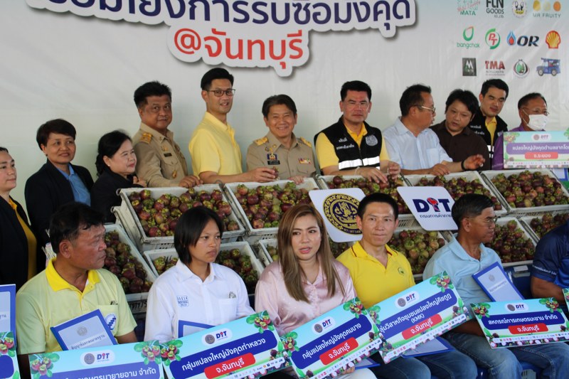 จันทบุรี – กรมการค้าภายใน กระทรวงพาณิชย์ ปล่อยคาราวานมังคุดกระจายผลผลิตเกษตรกรสู่ผู้บริโภคเชื่อมโยงการรับซื้อมังคุด @จันทบุรี ช่วยเหลือเกษตรกร นำผลไม้คุณภาพสู่ผู้บริโภค