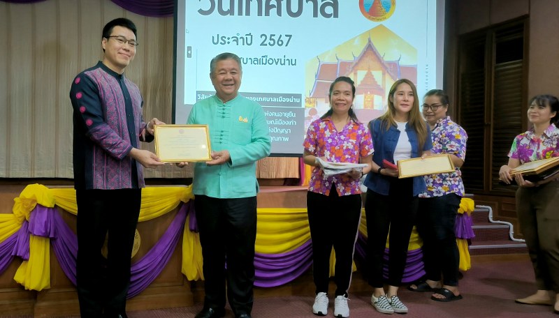 จากนั้น ได้มอบเกียรติบัตร ขวัญใจเทศบาลเมืองน่าน ให้กับเจ้าหน้าที่พนัก ลูกจ้าง เทศบาลเมืองน่าน 20 คน โดยนายทัตติ งานอ่อน ผู้ช่วยนักประชาสัมพันธ์ งานส่งเสริมการท่องเที่ยวและประชาสัมพันธ์ ฝ่ายอำนวยการ สำนักปลัดเทศบาล เทศบาลเมืองน่าน ได้รับเกียรติบัตร ขวัญใจเทศบาลเมืองน่านประเภทยอดเยี่ยม และอีก 19 คนได้รับเกียรติบัตรขวัญใจเทศบาลเมืองน่านประเภทสูงสุด และได้มอบนโยบายไม่รับของขวัญ No Gift Policy เทศบาลเมืองน่านอายุ 88 ปี ทันโลก ทันสมัย ทันท่วงที ประจำปี พ.ศ.2567 เพื่อรณรงค์ให้ผู้บริหาร พนักงานเทศบาล พนักงานจ้างตามภารกิจ พนักงานจ้างทั่วไป และบุคลากรในสังกัดเทศบาลเมืองน่านทุกคน งดรับของขวัญจากบุคคลภายนอกผู้มาติดต่อราชการ และงดให้ของขวัญแก่บุคคลภายนอกผู้มาติดต่อราชการ เพื่อหลีกเลี่ยงการกระทำอันอาจมีผลต่อดุลพินิจ หรือการตัดสินใจ ในการปฏิบัติหน้าที่ ซึ่งนำไปสู่การเลือกปฏิบัติ หรือก่อให้เกิดผลประโยชน์ทับซ้อน