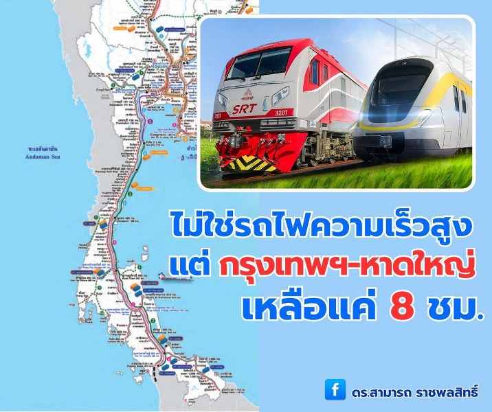 ฟังดูเหมือนฝันใช่ไหมครับ? การเดินทางด้วยรถไฟจาก กรุงเทพฯ-หาดใหญ่ ระยะทางเกือบ 1,000 กิโลเมตร จากวันนี้ที่ต้องนั่งกันยาว 14-15 ชั่วโมง จะเหลือแค่ 8 ชั่วโมงเท่านั้น!