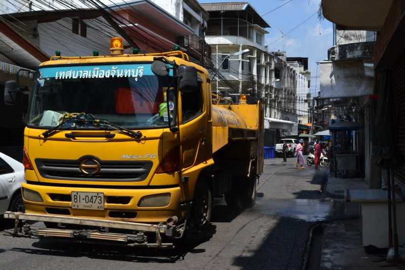 ที่ตลาดพลอย ซอยกระจ่าง – ซอยศรีจันท์ เทศบาลเมืองจันทบุรีได้นำรถฉีดน้ำ และเครื่องฉีดพ่นยาฆ่าเชื้อ ออกฉีดทำความสะอาดตลาดพลอยเพื่อสร้างความมั่นใจแก่ประชาชน ซึ่งเป็นแหล่งเศรษฐกิจสำคัญของจังหวัดจันทบุรี ถือเป็นมาตรการป้องกันโรคโควิด-19 ขณะเดียว กันคณะกรรมการโรคติดต่อจังหวัดจันทบุรีได้ออกคำสั่งเพิ่มเติม เรื่อง มาตรการป้องกันเพื่อลดโอกาสการแพร่ระบาดของโรคติดเชื้อไวรัสโคโรนา 2019 หรือ โควิด-19 ในสถานที่ ที่มีความเสี่ยงสูงต่อการแพร่ระบาดของโรค