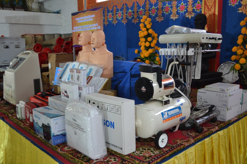 วันนี้ ( 25 มี.ค.63 ) ที่วัดนายายอาม อ.นายายอาม จ.จันทบุรี พระราชจันทโมลี เจ้าคณะจังหวัดจันทบุรี พร้อมด้วย พระครูสุธรรมกิจจาทร เจ้าอาวาสวัดนายายอาม ได้นำอุบาสก อุบาสิกา ศิษยานุศิษย์ และประชาชนร่วมในพิธีมอบอุปกรณ์ทางการแพทย์ แก่โรงพยาบาลพระปกเกล้า จันทบุรี โดยนางสุจริตรา ศรีนาม นายกเหล่ากาชาด พร้อมด้วย นายแพทย์เกรียงศักดิ์ วัชรนุกูลเกียรติ ผู้อำนวยการโรงพยาบาลพระปกเกล้า จันทบุรี นำคณะกรรมการเหล่ากาชาด และเจ้าหน้าที่ร่วมรับมอบ ซึ่งครั้งนี้แยกเป็น