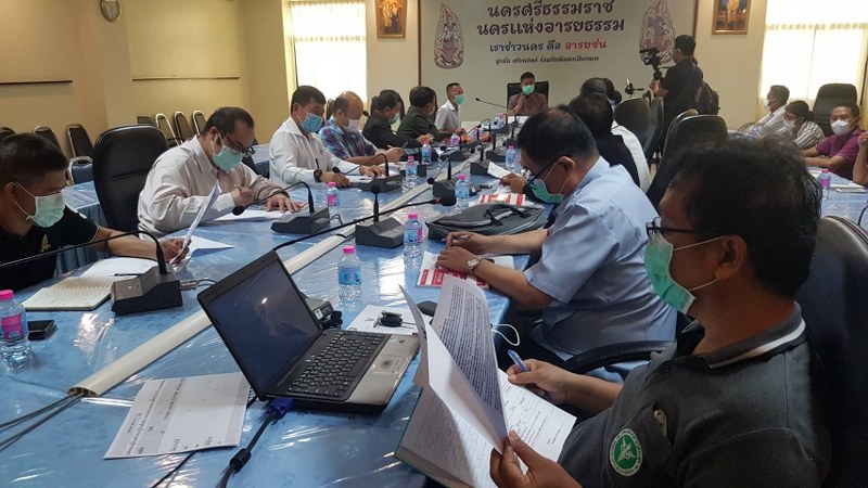 เมื่อเวลา 18.00 น.วันที่ 22 มี.ค.2563 ที่ห้องประชุมชั้น 4 ศาลากลางจังหวัดนครศรีธรรมราช ซึ่งเปิดเป็นศูนย์บริหารจัดการสถานการณ์การแพร่ระบาดของโรคติดเชื้อไวรัสโคโรนา 2019 หรือโควิด-19 นายสมพงษ์ มากมณี รองผวจ.นครศรีธรรมราช พร้อมด้วย นพ.จรัสพงษ์ สุขกรี นายแพทย์สาธารณสุขจังหวัดนครศรีธรรมราช, นพ.กิตติ รัตนสมบัติ ผอ.รพ.ท่าศาลา และผู้บริหาร ผอ.รพ.ต่างๆในจ.นครศรีธรรมราช ได้มีการประชุมสรุปสถานการณ์ล่าสุดของการระบาดโรคโควิด-19 ในจ.นครศรีธรรมราช ซึ่งก่อนหน้านี้มีผู้ติดเชื้อในจ.นครศรีธรรมราชแล้วจำนวน 2 ราย คือ นักศึกษาหนุ่มวัย 21 ปี ที่เพิ่งเดินทางกลับจากประเทศอิหร่าน มาที่บ้านพักใน อ.ท่าศาลาและรายที่ 2 เป็นเซียนมวยที่เดินทางกลับมาจากสนามมวยลุมพินี กทม.มาที่บ้านใน ต.โพธิ์สเด็จ อ.เมือง จ.นครศรีธรรมราช