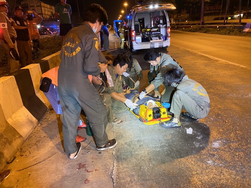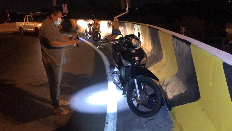 นนทบุรี หนุ่มวัย 43 ปี ควบ รถ จยย.คู่ใจชนราวสะพานกลับรถตกลงมาเจ็บสาหัส