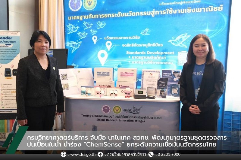 กระทรวงการอุดมศึกษา วิทยาศาสตร์ วิจัยและนวัตกรรม (อว.) โดย กรมวิทยาศาสตร์บริการ (วศ.) เดินหน้าขับเคลื่อนการพัฒนามาตรฐานสำหรับนวัตกรรมไทย ร่วมกับ ศูนย์นาโนเทคโน โลยีแห่งชาติ (นาโนเทค) สำนักงานพัฒนาวิทยาศาสตร์และเทคโนโลยีแห่งชาติ (สวทช.) เพื่อยกระดับมาตรฐาน ชุดตรวจสารปนเปื้อนในน้ำและสิ่งแวดล้อม ซึ่งเป็นเทคโนโลยีที่มีความต้องการใช้งานเพิ่มขึ้นอย่างต่อเนื่องในปัจจุบัน โดยเลือก “ชุดตรวจวัดสารเคมีในน้ำ ChemSense” เป็นกรณีศึกษาในการจัดทำข้อกำหนดคุณลักษณะสำหรับมาตรฐานชุดตรวจ นำร่องด้วย ชุดตรวจแมงกานีสในน้ำ คาดว่าจะแล้วเสร็จภายในปี 2569 ก่อนขยายไปยังชุดตรวจอื่นๆ ในกลุ่ม ChemSense เช่น เหล็ก ฟลูออไรด์ และทองแดง รวมถึงชุดตรวจโลหะหนักในน้ำ M Sense เพื่อสร้างความเชื่อมั่นให้กับผลงานนวัตกรรมไทย และเพิ่มขีดความสามารถในการแข่งขันในเวทีการค้าโลกอย่างยั่งยืน