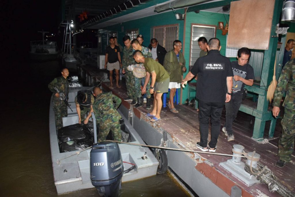 จนกระทั่งเวลาประมาณ 19.30 น. เจ้าหน้าที่หน่วยเรือรักษาความสงบเรียบร้อยตามลำแม่น้ำโขง( นรข)จังหวัดมุกดาหาร ซึ่งเฝ้าสังเกตการณ์อยู่ที่ บ้านบางทรายน้อย ตำบลบางทรายน้อย พบเรือกีบเพลายาวจำนวน 2 ลำได้แล่นมาจากฝั่งประเทศเพื่อนบ้าน มาจอดที่บริเวณริมฝั่งแม่น้ำโขงบ้านบางทรายน้อยตำบลบางทรายน้อยอำเภอหว้านใหญ่ จากนั้นได้มีกลุ่มชายประมาณ 4 – 6 คนได้ลงจากฝั่งช่วยกันขนสิ่งของในเรือขึ้นมาบนฝั่งจนหมด เจ้าหน้าที่ จึงได้แสดงตัวเพื่อตรวจสอบ