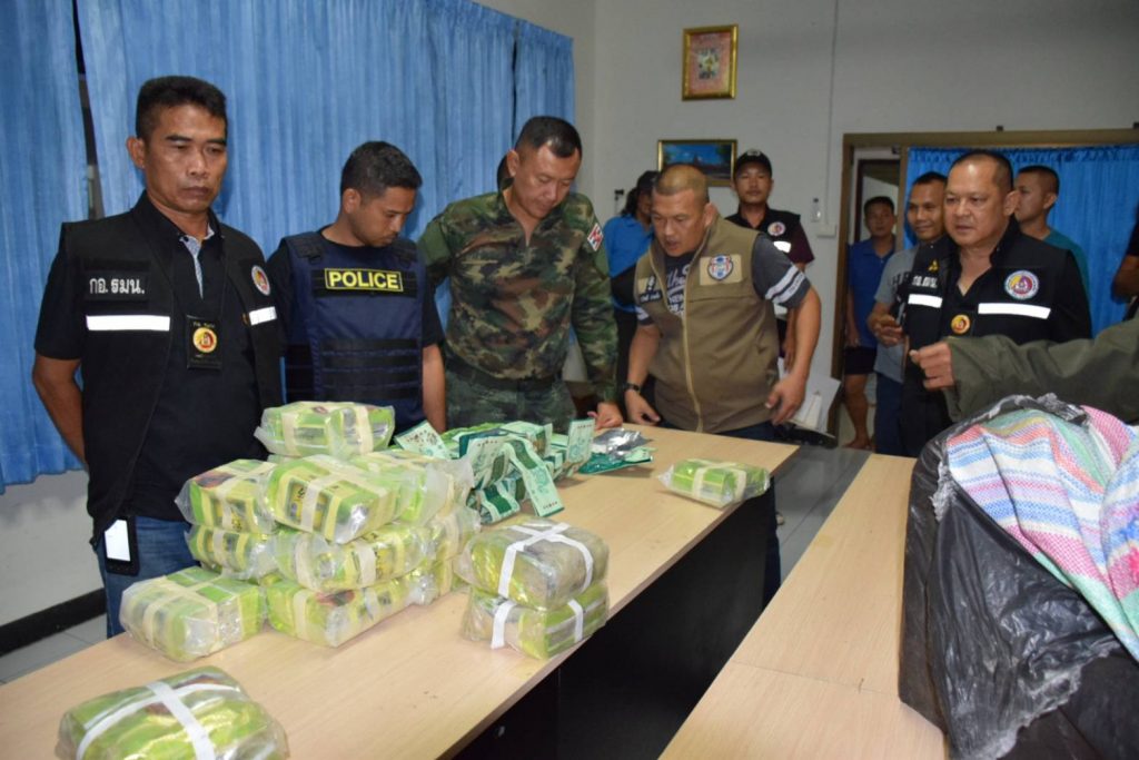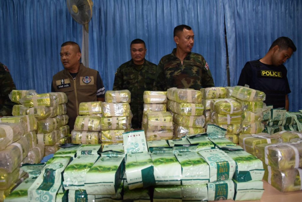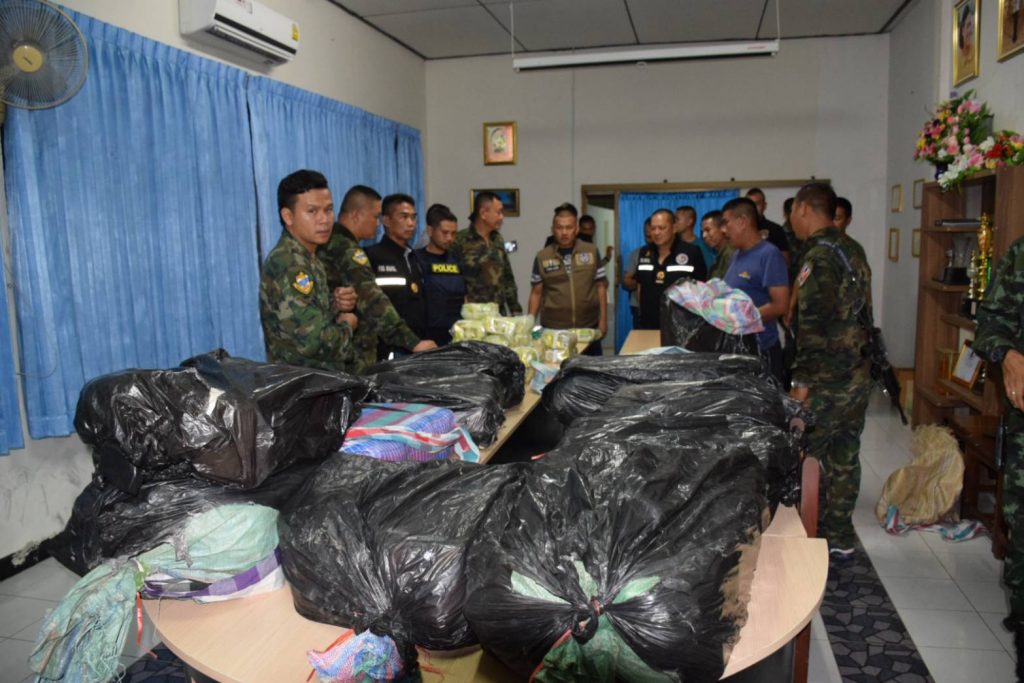 กลุ่มชายดังกล่าวเมื่อเห็นเจ้าหน้าที่อาศัยความมืดวิ่งหลบหนีไปได้ ส่วนคนขับเรือได้ขับเรือออกจากฝั่งไปยังประเทศเพื่อนบ้นอย่างรวดเร็ว เจ้าหน้าที่จึงเข้าตรวจสอบพื้นที่พบถุงดำวางกระจัดกระจายในพื้นที่จำนวน 13 ถุง แกะออกดูพบเป็นยาเสพติด ยาไอซ์และเคตามิน จึงได้ประสานเจ้าหน้าที่ซึ่งเฝ้าระวังตามจุดต่าง ๆ ที่อยู่ข้างเคียง บูรณาการค้นหาตามบริเวณพื้นที่โดยรอบ ซึ่งใช้เวลาประมาณ 30 นาทีไม่พบยาเสพติดหรือสิ่งของต้องสงสัยเพิ่มเติม จึงได้นำของกลางขึ้นเร็วจู่โจม หน่วยรักาความสงบเรียบร้อยตามลำแม่น้ำโขง มาตรวจนัดที่สถานีเรือมุกดาหาร พบเป็นยาไอซ์จำนวน 133 กิโลกรัมและ เคตามีนจำนวน 119 กิโลกรัม รวมของกลางจำนวน 252 กิโลกรัม มูลค่าของกลางประมาณ 200 ล้านบาท โดยคิดจากราคา จำหน่าย เคตามิน กิโลกรัมละ 400,000 – 500,000 บาท ไอซ์เกรด AAA กิโลกรัมละ 1 ล้าน ถึง 1.5 ล้านบาท
