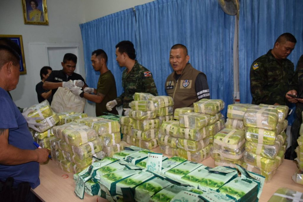 แถลงข่าว เมื่อวันที่ 31 พฤษภาคม 2562 เวลา 16.00 น. ที่สถานีเรือมุกดาหาร หน่วยรักษาความสงบเรียบร้อยตามลำแม่น้ำโขงจังหวัดมุกดาหาร นายชยันต์ ศิริมาศ ผู้ว่าราชการจังหวัดมุกดาหาร พร้อมด้วย นาวาเอก อภิชาติ แก้วดวงเทียน ผู้บังคับการหน่วยเรือรักษาความสงบเรียบร้อยตามลำแม่น้ำโขงเขตนครพนม และเจ้าหน้าที่ฝ่ายความมันคง ประกอบด้วย ทหารกองกำลังสุรศักดิ์มนตรี ตำรวจภูธรจังหวัดมุกดาหาร ตรวจคนเข้าเมืองจังหวัดมุกดาหาร ตำรวจน้ำ ตำรวจตระเวนชายแดน กอ.รมน.มุกดาหาร และฝ่ายปกครอง ได้ร่วมกันแถลงข่าว การตรวจยึดยาเสพติดประเภท 1 ยาไอซ์ จำนวน 133 กิโลกรัม เคตามีนจำนวน 119 กิโลกรัม รวมของกลางจำนวน 252 กิโลกรัม มูลค่าของกลางประมาณ 200 ล้านบาท หลังจากถูกเจ้าหน้าที่ตรวจยึดได้ ที่ริมฝั่งแม่น้ำโขง ตำบลบางทรายน้อย อำเภอหว้านใหญ่ จังหวัดมุกดาหาร คืนวันที่ 30 พฤษภาคม 2562 ส่วนเรือรับส่งและผู้กระทำผิด อาศัยความมืดหลบหนีไปได้