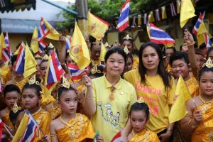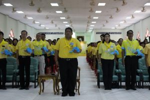 จังหวัดสระบุรี-จัดพิธีเจริญพระพุทธมนต์ ทำบุญตักบาตร โดยพสกนิกรทุกหมู่เหล่าแต่งกายด้วยเสื้อสีเหลือง เพื่อเทิดพระเกียรติ แสดงความจงรักภักดี