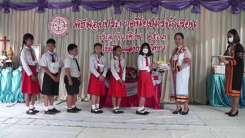 พร้อมกันนี้ ภายในงาน ก็ได้มีการมอบประกาศนียบัตรเชิดชูเกียรติ ให้แก่นักเรียนที่เรียนดีเด่น ประจำปีการศึกษา 2563 ได้แก่ ด.ญ.เมทรีส ชมชื่น นักเรียนชั้นอนุบาล 3 และ ด.ช.วสุพล ทาโทน นักเรียนชั้นประถมศึกษาปีที่ 6 ก่อนปิดท้ายด้วยกิจกรรม นักเรียนมอบพวงมาลัยแด่ครู เพื่อเป็นการแสดงออกถึงความรัก ความผูกพันธ์ ความกตัญญูกตเวทีของนักเรียนและคุณครู ท่ามกลางบรรยากาศสุดชื่นมื่น