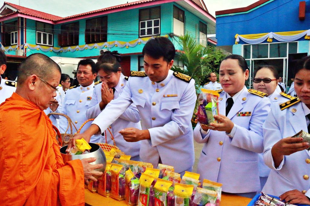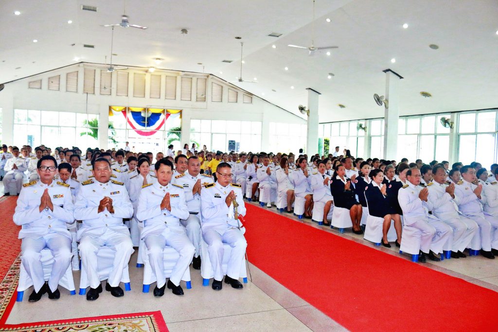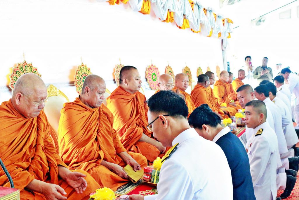 โดยพิธีเริ่มตั้งแต่เวลา 07.00 น. นายอำเภอสัตหีบ เป็นประธานประกอบพิธีจุดธูปเทียน บูชาพระรัตนตรัย ถวายราชสักการะพระบรมฉายาลักษณ์พระบาทสมเด็จพระปรเมนทรรามาธิบดีศรีสินทร มหาวชิราลงกรณ พระวชิรเกล้าเจ้าอยู่หัว เปิดกรวยกระทงดอกไม้ธูปเทียนแพ หน้าพระฉายาลักษณ์สมเด็จพระเจ้าอยู่หัว พระภิกษุสงฆ์สวดเจริญพระพุทธมนต์เฉลิมพระเกียรติ จากนั้นนำข้าราชการ พ่อค้า ประชาชนร่วมพิธีทำบุญใส่ตักบาตรข้าวสารอาหารแห้งแด่พระสงฆ์ ก่อนร่วมกันลงนามถวายพระพร