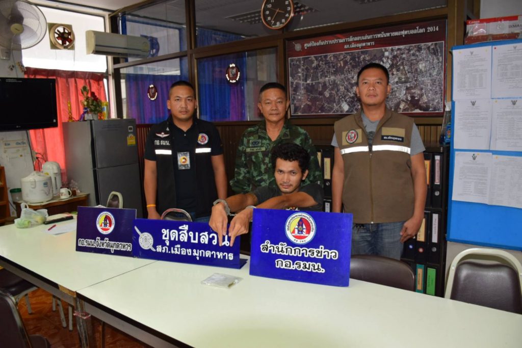 มุกดาหาร ฝ่ายความมั่นคง กอ.รมน.ร่วมตำรวจภูธรเมืองมุกดาหาร จับกลุ่ม 2 วัยรุ่นชายจากต่างพื้นที่มาส่งยาไอซ์ให้เครือข่ายที่มุกดาหาร โดยนัดหมายกันที่บริเวณภายในรีสอร์ทแห่งหนึ่ง เป็นจุดส่งยาไอซ์ ถูกเจ้าหน้าที่จับกุมวัยรุ่นทั้ง 2 คาถุงไอซ์ส่วนเครือข่ายอยู่เมืองมุกไหวตัวทันหลบหนีไปได้