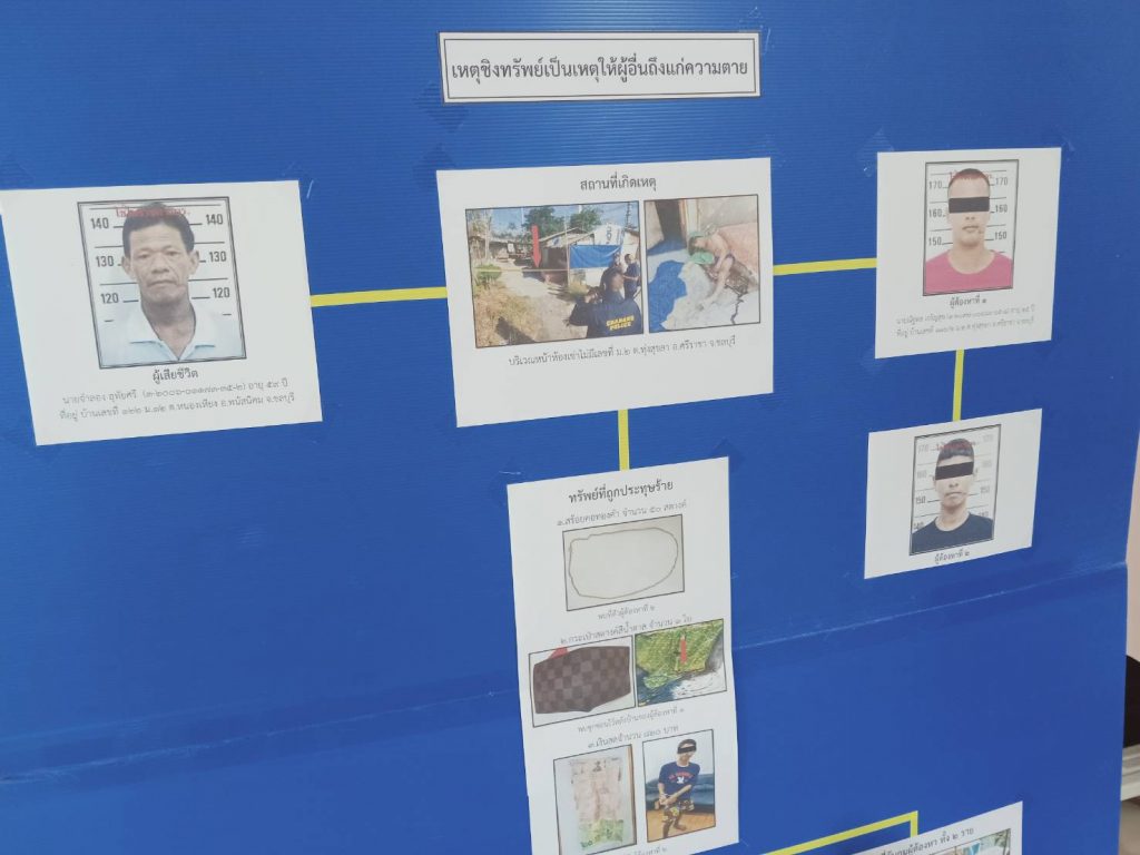 ผู้บังคับการตำรวจภูธรจังหวัดชลบุรี พล.ต.ต.นันทชาติ ศุภมงคล เดินทางมาแถลงข่าวและทำแผนประกอบคำรับสารภาพ กรณี สองคนร้าย ร่วมกันฆ่า ชิงทรัพย์ รปภ.ที่บ้านเช่าแห่งหนึ่ง ในหมู่ 2 ต.ทุ่งสุขลา อ. ศรีราชา จ.ชลบุรี โดยใช้ท่อนไม้ทุบตี ที่ศรีษะ นาย จำลอง อุทัยศรี อายุ 59 ปี รปภ.บริษัทแห่งหนึ่ง พร้อมชิงเอา สร้อยคอทองคำหนัก สองสลึง 1 เส้นไป และกระเป๋าสตางค์ ที่ภายในมีเงินอยู่ 820 บาท ไปเมื่อเวลา 03.00 ของวันใหม่ที่ 30 ก.พ.62และได้หลบหนีทางป่าด้านหลังชุมชนบ้านทุ่ง ที่ก่อเหตุ