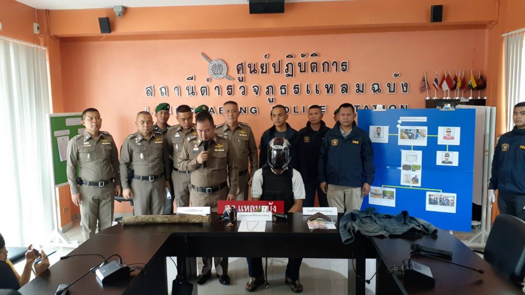 ซึ่งต่อมาทางเจ้าชุดสืบสวน สภ.แหลมฉบังได้ทำการสืบสวนติดตามจนสามารถ จับกุมตัว นาย ณัฐพล เจริญสุข อายุ 25 ปี ได้ที่บ้านเลขที่ 116/2 ม.2 ต.ทุ่งสุขลา อ.ศรีราชา จ.ชลบุรี พร้อมกระเป๋าสตางค์ของผู้ตาย ซุกซ่อนในห้องพัก พร้อมสร้อยคาทองคำหนัก สองสลึง 1 เส้นและนาย เน (นามสมมุติ) อายุ 17 ปี ผู้ร่วมก่อเหตุ โดยทั้สองให้การรับสารภาพว่า ก่อนเกิดเหตุ นาย ณัฐพล ได้มาแคะประตูเรียกผู้ตายเพื่อขอเงิน แต่กลับถูกผู้ตายพูดจาดูถูก จึงกลับออกมาชวน นาย เน กลับเข้าไปอีกครั้งพร้อมอาวุธ เป็นท่อนไม้มะขาม ยาวประมาณ 73 ซม. และแคะประตูเรียกนาย จำลอง อีกครั้ง เมื่อนาย จำลอง เปิดประตูออกมา จึงใช้อาวุธไม้ที่เตรียมกระหน่ำตีไปที่ศรีษะ จนล้มลง ก่อนชิงเอาทรัพย์สินหลบหนีไป เมื่อ 03.00 ของวันที่ 30 ก.ค.62