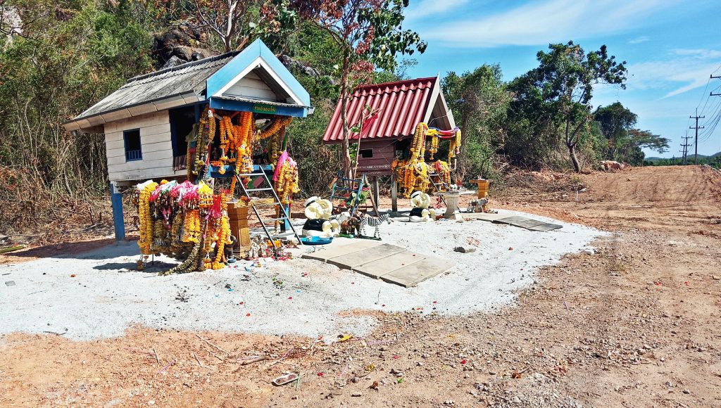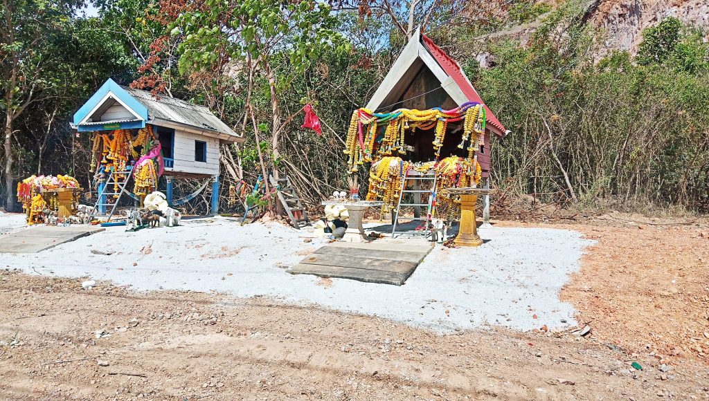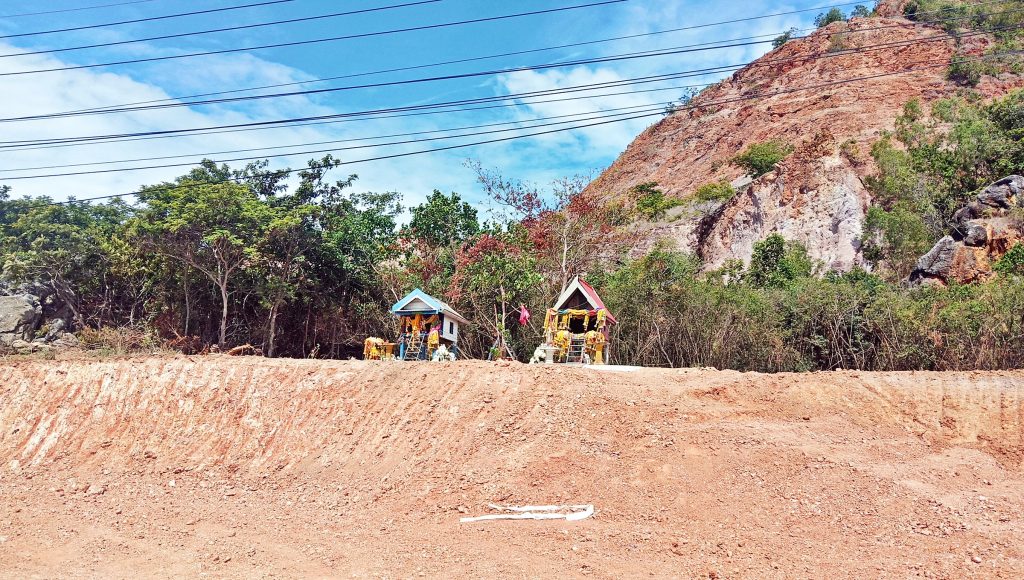 สอบถามผู้รับเหมาก่อสร้างบริเวณนั้น ทราบว่าศาลดังกล่าวทางเจ้าหน้าที่โครงการก่อสร้างได้ทำพิธีจุดธูปบอกกล่าวในการขอย้ายศาล และอัญเชิญขึ้นไปข้างบนห่างจากจุดเดิมประมาณ 50 เมตร โดยไม่ทำการรื้อทึ้งและไปยุ่งเกี่ยวกับตัวศาลเลย แค่ทำการยกขยับเข้าไปข้างในให้พ้นเส้นทางการขยายถนน ที่กำลังก่อสร้าง โดยได้ทำการย้ายมาได้ซักพักแล้ว ซึ่งทางโครงการไม่อยากทำให้ชาวบ้านและในชุมชนในระแวกดังกล่าวไม่สบายใจ เกี่ยวกับการขยายถนนผ่านสิ่งศักดิ์สิทธิ์ ที่ชาวบ้านนับถือแต่อย่างใด จึงได้ทำการขยับศาลขึ้นไปบนเชิงเขาแทนและอยู่ในบริเวณใกล้เคียงจุดเดิมมากที่สุด