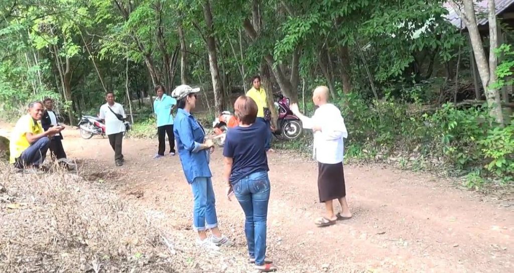 ด้านแม่ชีสุภัค เอี่ยมน้อย อ้างว่า พื้นที่บริเวณที่เป็นทางสาธารณะประโยชน์เดิมนั้น อยู่ในเขตพื้นที่ของทางวัด จึงเตรียมดำเนินการขุดหลุมฝังหลักทำแนวรั้ว เพื่อป้องกันไม่ให้ผู้คนสัญจรเข้า-ออกผ่านเขตวัด อีกทั้งก่อนหน้านี้ ระหว่างดำเนินการปรับปรุงเส้นทาง ก็ไม่มีใครมาแจ้งกับตน หรือทางวัดให้รับทราบ แต่กลับนำเครื่องจักรกลเข้ามาทำถนน จนต้นไม้และกอไผ่ได้รับความเสียหายบางส่วน ซึ่งหากชาวบ้านยังคงคัดค้าน ก็ให้หาหลักฐาน นำมาแสดงว่าบริเวณดังกล่าว เป็นถนนสาธารณะประโยชน์อย่างถูกต้อง