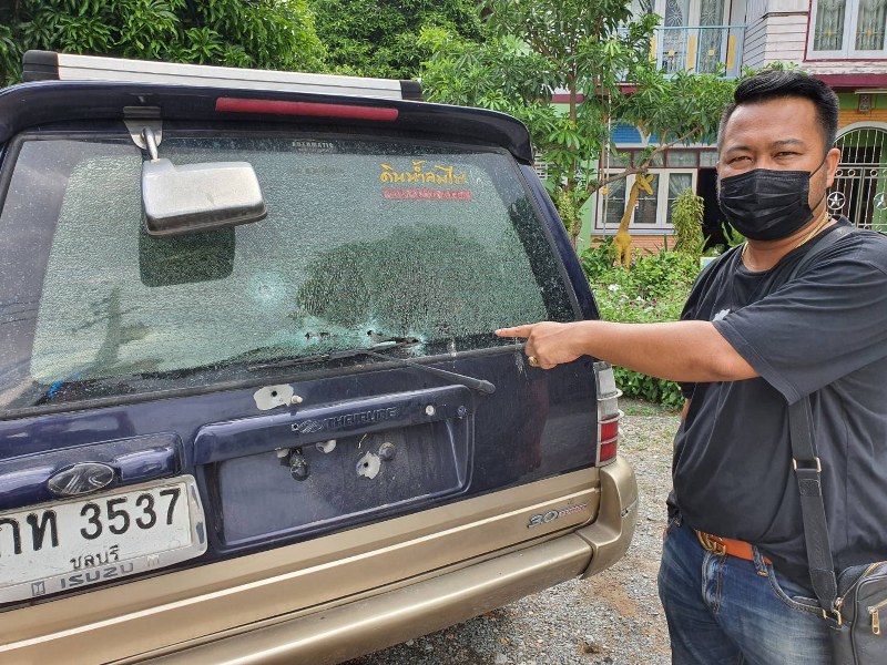 จากกล้องวงจรปิดที่พลเมืองดีส่งให้ทางเจ้าหน้าที่ตำรวจ พบว่าเวลาประมาณ 02.26-27 นาที วันที่ 31 ก.ค. 2564 คนร้ายจำนวน 2 คน ได้ขับรถมาบนถนน วนเวียนกลับรถก่อนที่จะมาจอดที่หน้าบ้าน คนร้ายได้ใช้อาวุธปืนยิงใส่รถยนต์แวน ยี่ห้ออีซูซุ สีน้ำเงิน หมายเลขทะเบียน กท 3537 ชลบุรี ที่จอดอยู่ภายในบ้าน เข้าที่กระจก และประตูด้านหลัง จำนวนกว่า 7 นัด และที่ยางรถด้านขวาที่ถูกยิงอีกหลายนัด โชคดีไม่มีผู้ที่ได้รับบาดเจ็บ หรือเสียชีวิต มีแต่รถได้รับความเสียหาย โดยกล้องวงจรปิดจับภาพการกระทำของคนร้ายไว้ได้ ซึ่งนางรวย เจ้าของบ้านยังอยู่ในอการตื่นตระหนก วิตก กังวล ถึงสาเหตุดังกล่าว ซึ่งเป็นไปได้ว่าคนร้ายที่ลงมือก่อเหตุ เป็นมือปืนระดับอาชีพ มีความแม่นยำ และใจเย็น ซึ่งนายตภิกฤษ ได้เข้าแจ้งความกับ ร.ต.อ. รินทร์ศักดิ์ ตะกูลธร รอง สว.(สอบสวน) สภ.ท่าโขลง อ.ท่าวุ้ง จ.ลพบุรี ในเบื้องต้นคาดว่าตั้งใจที่จะมายิงข่มขู่มากกว่าเอาชีวิต