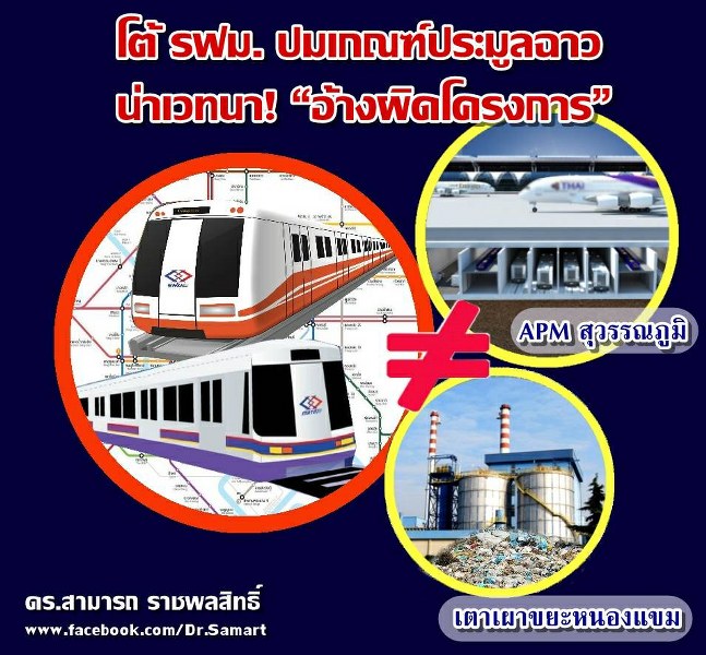 “ที่น่าเวทนาเป็นอย่างยิ่งก็คือ รฟม.อ้างว่าโครงการรถไฟฟ้าไร้คนขับ (Automated People Mover หรือ APM) ในสนามบินสุวรรณภูมิก็ใช้เกณฑ์เทคนิคประกอบเกณฑ์ราคา รฟม.ไม่รู้จริงๆ หรือว่า มีการใช้เกณฑ์นี้ในการประมูลแต่ไม่ประสบผลสำเร็จ ต้องยกเลิกการประมูลไป 2 ครั้ง สุดท้ายในการประมูลครั้งที่ 3 ต้องใช้เกณฑ์ราคา”