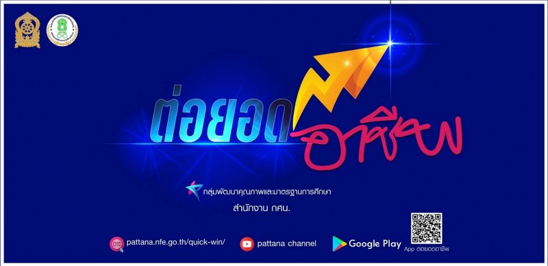 เลขาธิการ กศน.กล่าวด้วยว่า “สำนักงาน กศน. ได้ผลิตสื่อการเรียนรู้ในรูปแบบของคลิปวิดีโอ เพื่อใช้ประกอบการจัดกระบวนการเรียนรู้ตามหลักสูตรต่าง ๆ อีกจำนวน 24 ตอน ในชื่อรายการ “ต่อยอดอาชีพ”และพัฒนาระบบหลักสูตรเพื่อการพัฒนาอาชีพ Quick – Win (ต่อยอดอาชีพ) โดยดำเนินการออกแบบและพัฒนา platform ในรูปแบบ On Pc และ On mobile application เพื่อให้ผู้ที่สนใจสามารถดาวน์โหลดเพื่อนำไปใช้ประกอบการจัดการเรียนรู้ และส่งเสริมการมีอาชีพเพื่อสร้างรายได้ ได้ตามลิงค์ http://pattana.nfe.go.th/quick-win และรูปแบบ Mobile application “ต่อยอดอาชีพ” ในระบบ Android ผ่าน Google play store ซึ่งสามารถรองรับโทรศัพท์ในระบบ android Version 5.1 – version ปัจจุบัน ซึ่งสถานศึกษาในสังกัดทั่วประเทศก็จะนำหลักสูตรเหล่านี้ไปขยายผลจัดอบรม ฝึกอาชีพให้กับประชาชนที่สนใจต่อไป”