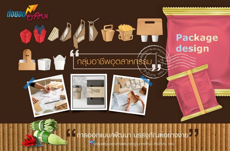 - กลุ่มอาชีพอุตสาหกรรม ได้แก่ หลักสูตรการออกแบบ/พัฒนาบรรจุภัณฑ์อย่างง่าย