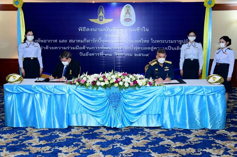 วันที่ 31 ส.ค. 2564 ที่กองบัญชาการกองทัพอากาศ ดอนเมือง สมาคมกีฬารักบี้ฟุตบอลแห่งประเทศไทยในพระบรมราชูปถัมภ์ โดย พ.ต.ท.กุลธน ประจวบเหมาะ นายกสมาคม ร่วมพิธีลงนามบันทึกข้อตกลงความร่วมมือ (MOU) กับ กองทัพอากาศ โดย พล.อ.อ.แอร์บูล สุทธิวรรณ ผู้บัญชาการทหารอากาศ เพื่อร่วมกันพัฒนาวงการกีฬารักบี้ ซึ่งมี พล.อ.อ.สุรพล พุทธมนต์ รอง ผบ.ทอ., พล.อ.ท.มนัท ชวนะประยูร เจ้ากรมข่าวทหารอากาศและในฐานะอุปนายกสมาคมกีฬารักบี้ฟุตบอลแห่งประเทศไทยฯ, พล.อ.ต.มงคล ตั้งสุณาวรรณ รองประธานสโมสรรักบี้ทอ., พล.อ.ต.ธนเดช เบ็ญจวรรณ ที่ปรึกษาสโมสรรักบี้ทอ., ประวิทย์ มนต์เสรีนุสรณ์ อุปนายกสมาคม, พล.ร.ต. ปกครอง มนธาตุผลิน เลขาธิการสมาคม, พล.ต.ต.สุทธิพงษ์ เพชรรักษ์ ประธานฝ่ายผู้ฝึกสอนสมาคม, ธนากร ผลอนันต์ ประธานฝ่ายประชาสัมพันธ์สมาคม, อรรถพล วงศ์รัตน์ ผู้จัดการสมาคม ร่วมเป็นสักขีพยาน