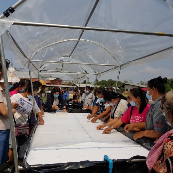 ชุดปลูกแบบน้ำไหลเวียน DRFT มีโครงสร้างขนาด 1.2 x 3.4 เมตร คลุมโครงหลังคาด้วยพลาสติกขุ่น จากนั้นจึงติดตั้งระบบน้ำไหลเวียนของสาร ละลายธาตุอาหารผักโดยใช้เครื่องปั๊มน้ำ แช่ในถังพักสารละลาย แล้วต่อท่อสูบส่งไปเลี้ยงระบบ ไหลเวียนไปแต่ละร่องปลูกเพื่อให้ผ่านรากแต่ละต้น และระบายผ่านวาล์วรักษาระดับน้ำ กลับไปที่ถังพักสารละลายธาตุอาหารตลอดอายุการปลูก โดยขณะนี้ ได้จัดส่งชุดปลูกดังกล่าว พร้อมอุปกรณ์เพาะกล้า ถังเก็บสารละลายธาตุอาหาร ธาตุอาหารสำหรับผัก และเมล็ดพันธุ์ผัก เกษตรกรในหลายจังหวัด มีการต่อยอดและประสบผลสำเร็จเพิ่มมากขึ้น เห็นได้จากการนำผลผลิตที่ได้ไปมอบให้กับโรงพยาบาลสนาม การเพิ่มชุดปลูก การจำหน่ายผลผลิต รวมถึงการต่อยอดเพื่อปลูกพืชผักและสมุนไพรชนิดอื่นๆ อีกด้วย