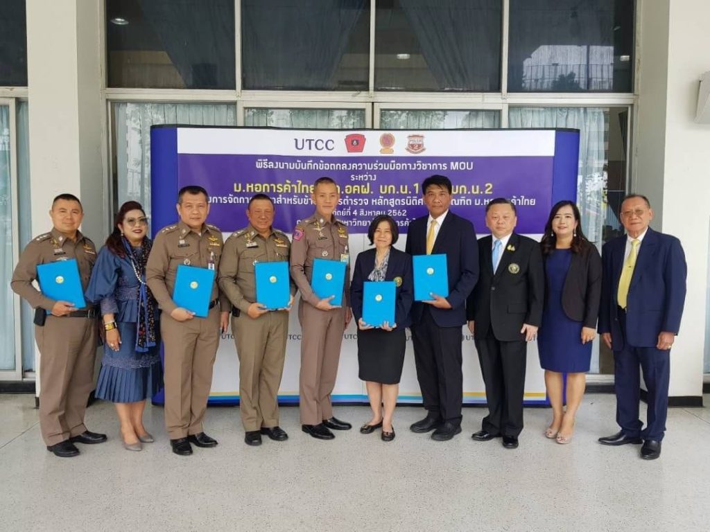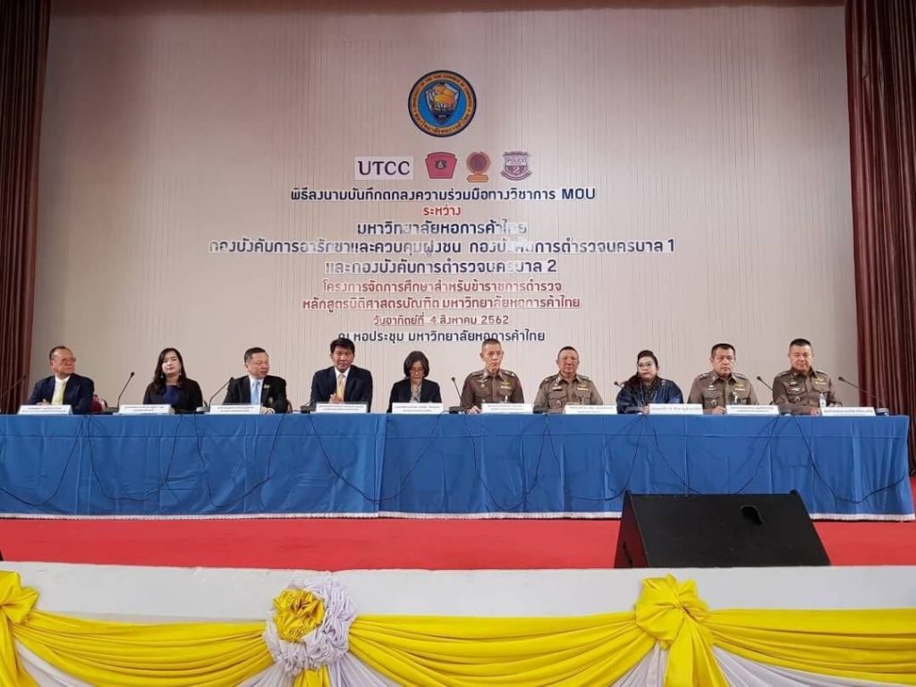 เมื่อวันอาทิตย์ที่ 4 ส.ค.62 เวลา 09.00 น. : พล.ต.ต.ดร.เสนิต สำราญสำรวจกิจ ผบก.น.1 พร้อมด้วย พล.ต.ต.ไพโรจน์ สุขรวยธนโชติ ผบก.อคฝ.,พ.ต.อ.มนต์ชัย ศรีประเสริฐ รอง ผบก.น.1,พ.ต.อ.ยรรยง สันติปรีชาวัฒน์ รอง ผบก.น.2 ได้เดินทางมาร่วมพิธีลงนามบันทึกข้อตกลงความร่วมมือทางวิชาการ MOU ระหว่าง มหาวิทยาลัยหอการค้าไทย,บก.อคฝ.,บก.น.1 และ บก.น.2 ใน “โครงการจัดการศึกษาสำหรับข้าราชการตำรวจหลักสูตรนิติศาสตร์บัณฑิต รุ่นที่ 2” ณ ห้องประชุม มหาวิทยาลัยหอการค้าไทย