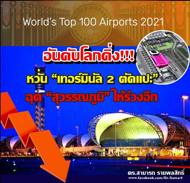 ในปี 2553 สนามบินสุวรรณภูมิเคยรั้งอันดับ 10 ของโลก น่าเสียดาย! ที่หลังจากนั้นอันดับโลกของสนามบินสุวรรณภูมิร่วงลงมาเรื่อยๆ จนถึงปีนี้อยู่ที่อันดับ 66 ถ้า ทอท.ดัน “เทอร์มินัล 2 ตัดแปะ” ฝ่าแรงต้านจาก ป.ป.ช. สภาพัฒน์ และองค์กรวิชาชีพ 12 องค์กร ได้สำเร็จ สนามบินสุวรรณภูมิจะรุ่งหรือจะร่วง?