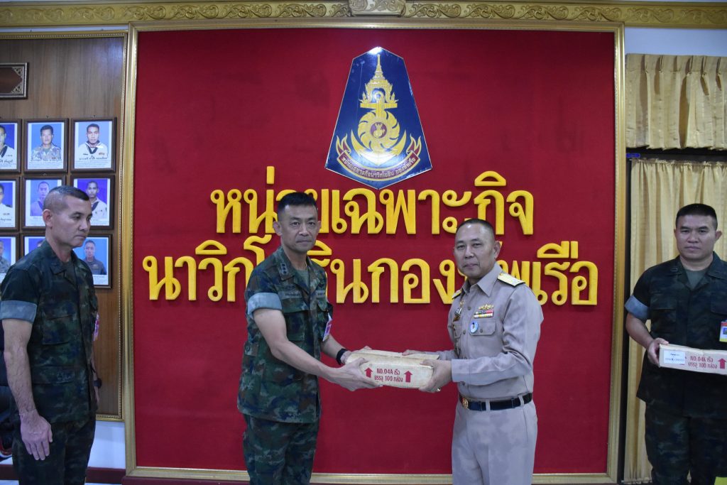 พลเรือโท ชุมศักดิ์นาควิจิตร ผู้บัญชาการฐานทัพเรือสัตหีบ ได้นำคณะกรรมการจัดสร้างเหรียญกรมหลวงชุมพรรุ่นบูรณะศาลเสด็จเตี่ย แหลมปู่เจ้า 2562 ซึ่งปลุกเสกเดี่ยว โดยพระครูสังฆกิจบูรพา หรือ หลวงปู่บัว ถามโก วัดศรีบูรพาราม จว.ตราด เดินทางโดยสายการบินพลเรือนไปมอบเหรียญกรมหลวงชุมพร จำนวน 2,000 เหรียญ ให้แก่กำลังพลของ ฉก.นย.ทร./ฉก.นย.ภต. ณ ห้องประชุม 101 ฉก.นย.ทร. ค่ายจุฬาภรณ์ ต.โคกเคียน อ.เมืองจว.นราธิวาส เมื่อวันเสาร์ที่ 3 สิงหาคม 2562 ที่ผ่านมา
