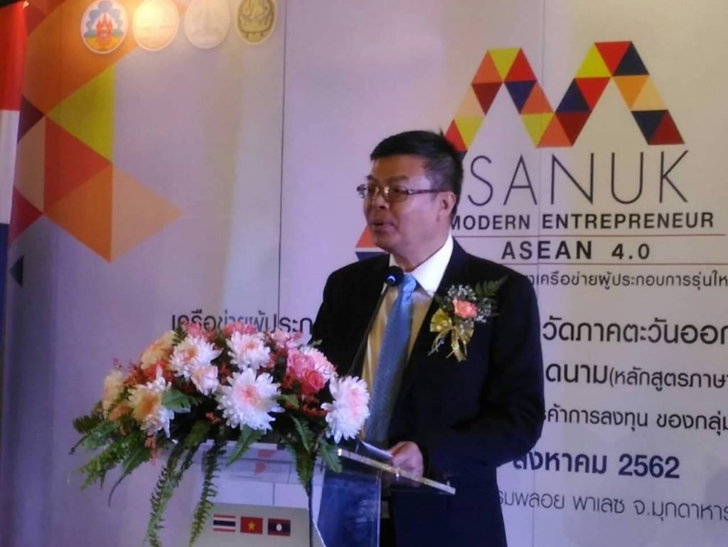 เมื่อวันที่ 6 สิงหาคม 2562 เวลา 09.00 น. ที่ห้องมรกต โรงแรมพลอยพาเลซ อำเภอเมือง จังหวัดมุกดาหาร นายชยันต์ ศิริมาศ ผู้ว่าราชการจังหวัดมุกดาหารเป็นประธาน เปิดงาน SANUK MODERN ENTREPRENEUR ASEAN 4.0 ซึ่งสำนักงานพาณิชย์จังหวัดมุกดาหาร จัดขึ้นภายใต้โครงการพัฒนา ขีดความสามารถด้านการค้า การลงทุนของกลุ่มจังหวัดสู่ไทยแลนด์ 4.0 กิจกรรมการพัฒนาเครือข่ายการค้าของผู้ประกอบการธุรกิจรุ่นใหม่ ของกลุ่มจังหวัดร่วมกับผู้ประกอบการธุรกิจรุ่นใหม่ประเทศเพื่อนบ้าน (สปป.ลาว และส.สเวียดนาม) หลักสูตรภาษาอังกฤษ เพื่อสร้างเครือข่ายผู้ประกอบการรุ่นใหม่ 3 ประเทศ และพัฒนาศักยภาพการดำเนินธุรกิจของผู้ประกอบการรุ่นใหม่ให้พร้อมต่อการแข่งขันในตลาดต่างประเทศ เพิ่มพูนความรู้และทักษะที่จำเป็นไปพร้อมกัน เพื่อรองรับการเปลี่ยนแปลงต่าง ๆ ที่เกิดขึ้นอย่างรวดเร็วในปัจจุบัน สร้างความเป็น เพื่อนมาก่อนแล้วธุรกิจจะตามมาภายหลัง