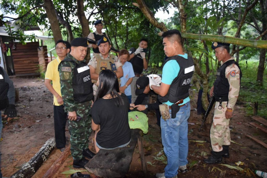 ครั้นเมื่อเวลา 06.00 น. เจ้าหน้าที่ได้แสดงตัวเข้าทำการตรวจค้นบ้านหลังดังกล่าว พบ น.ส.น้ำผึ้ง เชื้อคำฮด อยู่บ้านเลขที่ 223 ม.2 บ.มะนาว ต.พังแดง อ.ดงหลวง จว.มุกดาหาร อ้างว่าเป็นเจ้าของบ้าน ขณะนอนอยู่สามีได้ยินเสียงเจ้าหน้าที่ กระโดดลงจากบ้านวิ่งหนีเข้าไปในป่าสวนยาง อย่างรวดเร็วก่อนที่เจ้าหน้าที่จะไปถึง จากการตรวจค้นอย่างละเอียดเบื้องต้นพบ อาวุธปืนไทยประดิษฐ์ (ปืนแก๊ป) จำนวน 1 กระบอก เลื่อยโซ่ยนต์ จำนวน ๑ เครื่อง ตรวจค้นภายในกระเป๋าสะพายสีดำพบ กัญชา 1ห่อประมาณ 0.5 กรัม และ ยาบ้า จำนวน 1 เม็ด บรรจุอยู่ในถุงแบบรูดเปิด-ปิด พร้อมอุปกรณ์การเสพกัญชาและยาบ้า วางอยู่บนเตียงนั่ง อยู่ภายในบ้าน ขณะที่ทำการตรวจค้น เจ้าหน้าที่สังเกตเห็นว่า น.ส.น้ำผึ้งฯ แสดงท่าทางมีพิรุธมีความพยายามจะเดินออกห่างจากเจ้าหน้าที่ จึงได้ประสานผู้ใหญ่บ้านเพื่อขอความร่วมมือจากผู้ช่วยผู้ใหญ่บ้านซึ่งเป็นผู้หญิงมาทำการตรวจค้นตัว น.ส.น้ำผึ้งฯ เมื่อเห็นว่าจวนตัว น.ส.น้ำผึ้งฯ ได้ทิ้งขวดพลาสติกขนาดเล็กลงใกล้ๆกับจุดที่ตนเองยืนอยู่ ซึ่งซุกซ่อนอยู่ในกระเป๋ากางเกงยีนส์ขายาวตากอยู่ที่ราวตากผ้า เจ้าหน้าที่จึงได้นำมาตรวจสอบพบว่าเป็นยาบ้าจำนวน 24 เม็ด รวมยาบ้าทั้งหมด 25 เม็ด เจ้าหน้าที่จึงได้นำตัว ผู้ต้องหาพร้อมของกลางทั้งหมด ส่งพนักงานสอบสวน สภ.ดงหลวง เพื่อดำเนินการตามกฎหมายต่อไป