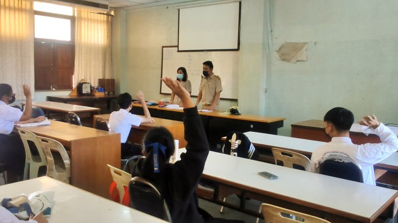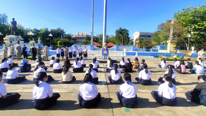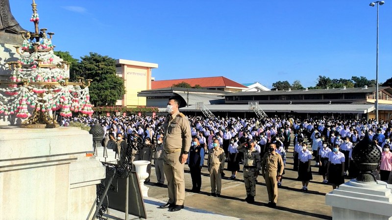 รวมถึงได้ร่วมให้โอวาทแก่นักเรียนทุกคนว่า ก่อนอื่นก็ขอยินดีกับลูก ๆ ทุกคนที่ได้มาเรียนในวันนี้ หลังจากที่ต้องศึกาผ่านระบบออนไลน์มานาน จึงขอให้ทุกคนได้ตั้งใจเรียน ตั้งใจศึกษาหาความรู้ เก็บเกี่ยวประสบการณ์ เพื่อนำไปใช้ในการดำเนินชีวิต เป็นคนดีของพ่อแม่ เป็นกำลังสำคัญของครอบครัวและสังคมในการพัฒนาประเทศชาติต่อไปในอนาคต และขอให้ดูแลสุขภาพของตนเองให้ดี ปฏิบัติตามมาตรการที่กำหนดอย่างเคร่งครัด ทั้งการเว้นระยะห่าง การสวมใส่หน้ากากตลอดเวลาหากมีการรวมกลุ่มกัน และการล้างมือบ่อย ๆ ด้วย เพราะเราต้องอยู่กับไวรัสโควิดไปอีกนาน แม้นว่านักเรียนทุกคนจะได้รับวัคซีนไปแล้วก็มีโอกาสที่จะติดเชื้อได้ถ้าไม่ปฏิบัติตัวอย่างเคร่งครัด เพราะการรับวัคซีนเป็นการสร้างภูมิคุ้มกันและบรรเทาอาการไม่ให้รุนแรงและเสียชีวิตหากได้รับเชื้อเท่านั้น