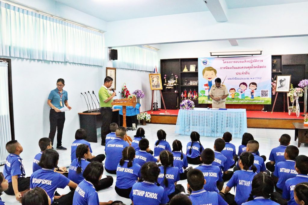 วันนี้ 7ส.ค.62 นายไพโรจน์ มาลากุล ณ อยุธยา นายกเทศมนตรีเทศบาลตำบลเขตรอุดมศักดิ์ มอบหมายให้ นาย ประสงค์ เอี่ยมสุข รองนายกเทศมนตรีเทศบาลตำบลเขตรอุดมศักดิ์ มาเป็นประธานในพิธีเปิด โครงการอบรมเชิงปฏิบัติการการป้องกันและควบคุมโรคติดต่อประจำท้องถิ่น ณ โรงเรียนสัตหีบเขตกองเรือยุทธการ อ.สัตหีบ จ.ชลบุรี โดยมี สมาชิกสภา หัวหน้าส่วนราชการ คณะครูอาจารย์ ตลอดจนนักเรียนชั้นประถมศึกษาปีที่ 4 จำนวน 50 คน เข้าร่วมรับการอบรม และในวันนี้ยังมีวิทยากรจาก สาธารณสุขอำเภอสัตหีบ มาบรรยายให้ความรู้ ความเข้าใจให้กับผู้เข้ารับการอบรมอีกด้วย