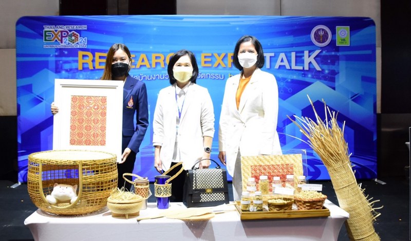 โดยหนึ่งผลงานวิจัยที่นำเสนอในเวที “Research Expo Talk” เป็นนักวิจัยจากมหาวิทยาลัยเทคโนโลยีราชมงคลธัญบุรี ที่นำนวัตกรรมเสื่อลำแพน ไปถ่ายทอดองค์ความรู้พัฒนากระบวนการผลิต เพื่อตอบสนองความต้องการชุมชน ให้ผลิตภัณฑ์มีความทนทาน ปราศจากเชื้อรา ป้องกันมอด ปลวก พัฒนาสีสันลวดลายที่สวยงาม จนสามารถสร้างรายได้ให้กับชุมชนอย่างมหาศาล เสื่อลำแพน เป็นสินค้าจากภูมิปัญญาของชาวบ้าน อำเภอประจันตคาม อำเภอปราจีนบุรี ที่ทำขายตกทอดกันมาตั้งแต่รุ่นปู่ย่า ตายาย จนถึงปัจจุบัน ซึ่งในอดีตใช้เป็นหลังคากันแดดกันฝน เมื่อเวลาเทียมเกวียน และดัดแปลงมาใช้เป็นผนัง ฝ้าเพดาน ถือได้ว่าเป็นสินค้าที่มีเรื่องราวเล่าขานถึงที่มาสร้างความภาคภูมิใจให้กับชุมชน ในปัจจุบันกระแสการอนุรักษ์สิ่งแวดล้อมที่มีมากขึ้นเสื่อลำแพนจึงเป็นสินค้าที่ได้รับความนิยมเพิ่มขึ้นเช่นกัน