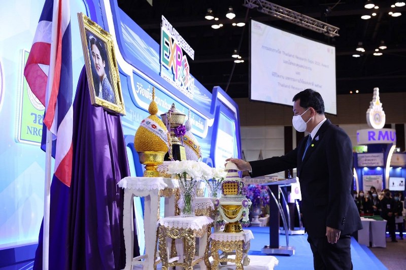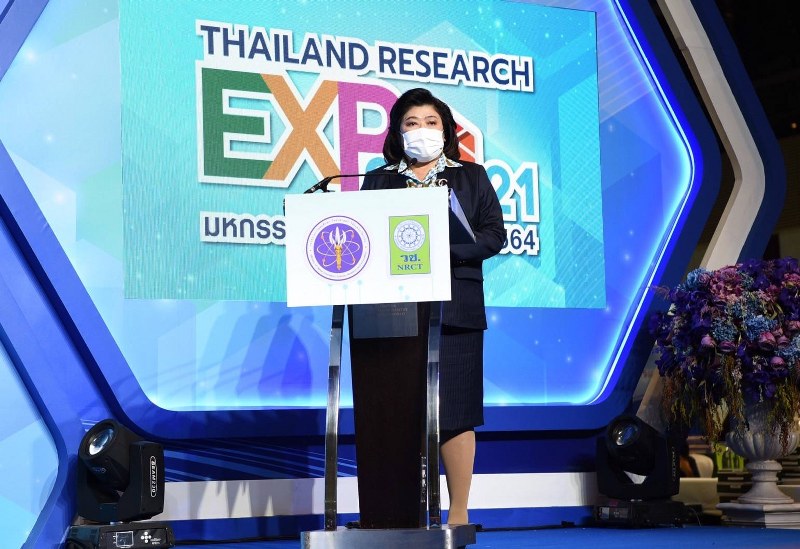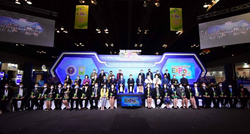 กระทรวงการอุดมศึกษา วิทยาศาสตร์ วิจัยและนวัตกรรม (อว.) โดย สำนักงานการวิจัยแห่งชาติ (วช.) จัดพิธีมอบรางวัล Thailand Research Expo 2021 Award และมอบโล่แสดงความขอบคุณแก่หน่วยงานที่นำผลงานร่วมนำเสนอ ในพิธีปิดงานมหกรรมงานวิจัยแห่งชาติ 2564 (Thailand Research Expo 2021) ซึ่งผลงานวิจัยและนวัตกรรมที่ได้รับรางวัล จะได้รับถ้วยรางวัลพระราชทานจากสมเด็จพระกนิษฐาธิราชเจ้า กรมสมเด็จพระเทพรัตนราชสุดาฯ สยามบรมราชกุมารี ถ้วยรางวัลจากนายกรัฐมนตรี ถ้วยรางวัลจากรัฐมนตรีว่าการกระทรวงการอุดมศึกษา วิทยาศาสตร์ วิจัยและนวัตกรรม และถ้วยรางวัลจากผู้อำนวยการสำนักงานการวิจัยแห่งชาติ พร้อมเงินรางวัล และเกียรติบัตร พิธีมอบรางวัลในวันนี้ ได้รับเกียรติจาก ศาสตราจารย์ ดร.นายแพทย์สิริฤกษ์ ทรงศิวิไล ปลัดกระทรวงการอุดมศึกษา วิทยาศาสตร์ วิจัยและนวัตกรรม เป็นประธานในพิธีปิด พร้อมมอบรางวัล Thailand Research Expo 2021 Award และมี ดร.วิภารัตน์ ดีอ่อง ผู้อำนวยการสำนักงานการวิจัยแห่งชาติ เป็นผู้มอบโล่แสดงความขอบคุณแก่หน่วยงานที่นำผลงานร่วมนำเสนอในงาน “มหกรรมงานวิจัยแห่งชาติ 2564 (Thailand Research Expo 2021)” ณ เวที Highlight Stage โรงแรมเซ็นทาราแกรนด์และบางกอกคอนเวนชันเซ็นเตอร์ เซ็นทรัลเวิลด์ กรุงเทพมหานคร