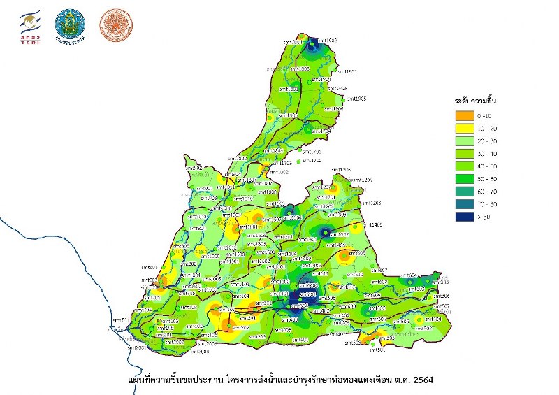 ผศ.ดร.ภาณุวัฒน์ ปิ่นทอง หัวหน้าโครงการฯ เปิดเผยว่า สถานการณ์น้ำต้นทุนของเขื่อนภูมิพลขณะนี้ มีปริมาณน้ำต้นฤดูแล้ง 64/65 ณ วันที่ 1 พ.ย.64 ใช้การได้อยู่ 4,229 ล้าน ลบ.ม. คิดเป็นร้อยละ 43 ของความจุใช้การ ใกล้เคียงกับน้ำต้นทุนในปีน้ำปกติ 2556 คาดการณ์ได้ว่า หน้าแล้งปีนี้ โครงการส่งน้ำฯ ท่อทองแดงจะมีสถานการณ์การเพาะปลูกที่เข้าสู่ภาวะปกติ ไม่เกิดการขาดแคลนน้ำ สามารถเพาะปลูกข้าวนาปรังได้ 218,760 ไร่ตามรูปแบบการส่งน้ำเดิม และหากใช้ผลของงานวิจัยที่ได้เสนอแนะแผนการจัดสรรน้ำร่วมกับการใช้ข้อมูลความชื้นดิน โครงการส่งน้ำฯท่อทองแดง จะมีพื้นที่เพาะปลูกข้าวนาปรังเพิ่มขึ้นเป็น 268,300 ไร่ โดยใช้ปริมาณน้ำที่รับเข้าโครงการฯ รวมทั้งฤดูกาล 216 ล้าน ลบ.ม. ประเมินเป็นพื้นที่เพาะปลูกที่เพิ่มขึ้นร้อยละ 22 เมื่อเทียบกับการส่งน้ำตามรูปแบบเดิม