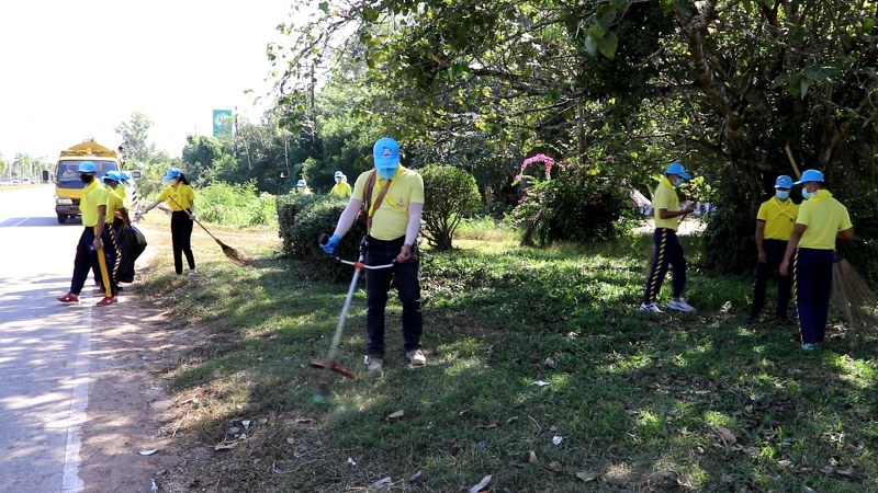 โดยกิจกรรมบำเพ็ญสาธารณประโยชน์ในครั้งนี้ จิตอาสาทุกคนได้ร่วมกันประกอบพิธีถวายความเคารพเบื้องหน้าพระบรมฉายาลักษณ์ จากนั้นได้แยกย้ายกันไปประจุดที่ได้รับมอบหมายที่มีการแบ่งเขตรับผิดชอบ 5 จุดใหญ่ คือจุดเริ่มต้นตั้งแต่บริเวณหน้าสนามบินนครพนมถึงทางเข้ามหาวิทยาลัยนครพนม (บ้านเนินสะอาด) จุดที่ 2 ถึงห้วยฮ่องหอ จุดที่ 3 ถึงหน้าโรงแรม I – Hotel จุดที่ 4 ถึงคณะเกษตรศาสตร์มหาวิทยาลัยนครพนม และจุดที่ 5 ถึงองค์การบริหารส่วนตำบลขามเฒ่า รวมระยะทาง 30 กิโลเมตรเพื่อร่วมกันปรับปรุงภูมิทัศน์ ตัดแต่งต้นไม้ กำจัดวัชพืช เก็บกวาดขยะ ตลอดเส้นทางที่จะใช้ในการรับเสด็จในโอกาสที่พระบาทสมเด็จพระเจ้าอยู่หัว ทรงพระกรุณาโปรดเกล้าฯ ให้สมเด็จพระกนิษฐาธิราชเจ้า กรมสมเด็จพระเทพรัตนราชสุดา ฯ สยามบรมราชกุมารี เสด็จพระราชดำเนินแทนพระองค์มาพระราชทานปริญญาบัตรแก่ผู้สำเร็จการศึกษาจากมหาวิทยาลัยนครพนม ในวันที่ 15 ธันวาคม 2564 เพื่อให้เส้นทางดังกล่าวเป็นไปด้วยความเรียบร้อย สะอาด สวยงามและสมพระเกียรติอย่างสูงสุด