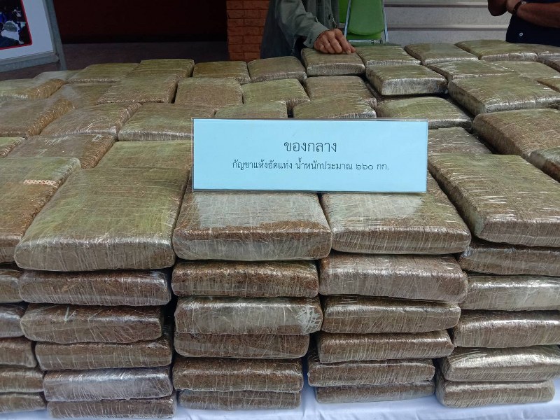 สืบเนื่องจากเมื่อเวลาประมาณ 20.00 น. ของวันที่11 ธ.ค.64 ขณะที่เจ้าหน้าที่ตำรวจ สภ. ห้วยยาง และทหารหน่วยเฉพาะกิจจงอางศึก ร่วมกันตั้งด่านตรวจความมั่นคง บริเรณหน้า สภ.ห้วยยาง บนถนน เพชรเกษมขาล่องใต้ ม.1.ต.ห้วยยาง อทับสะแก จ.ประจวบฯ ได้มีรถยนต์กระบะ ยี่ห้อมาสด้า สีขาว กระบะท้ายติดตู้ทึบ ทะเบียน ผน-7064 อุดรลธานี ขับเข้ามาถึงจุดตรวจ เจ้ากน้าที่จึงเรียกให้หยุดรถ พบนายเกรียงไกร บุญคำ อายุ 36ปี เป็นคนอำเภอ สว่างแดนดิน จังหวัดสกลนคร เป็นคนขับ โดยมี นส.กรรณิกา ปาระสิทธิ์ อายุ 33 ปี ทั้งสองเป็นคนจังหวัดเดียวกัน นั่งคู่มาด้านหน้าคนขับ เมื่อมาถึงจุดตรวจเจ้าหน้าที่เห็นที้งสอง แสดงอาการพิรุธ หน้าสงสัยว่ามีสิ่งผิดกฎหมายซุกซ่อนภายในรถ จึงขอตรวจค้น พบกัญชาแห่งอัดแท่ง ใส่ในถุงพลาสติกสีดำจำนวน 15 ห่อ แต่ละห่อมีกัญชาห่อละ 44 แท่ง รวมน้ำหนักประมาณ 660 กก.ซุกซ่อนอยู่หลังกระบะตู้ทึบ โดยมากล่องสุราและลังเบียร์เปล่า ปิดบังไว้ด้านท้ายรถอีกที เจ้าหน้าที่จึงนำตัวทั้งสองส่งพนักงานสอบสวน สภ.ห้วยยาง ดำเนินคดีตามกฎหมาย