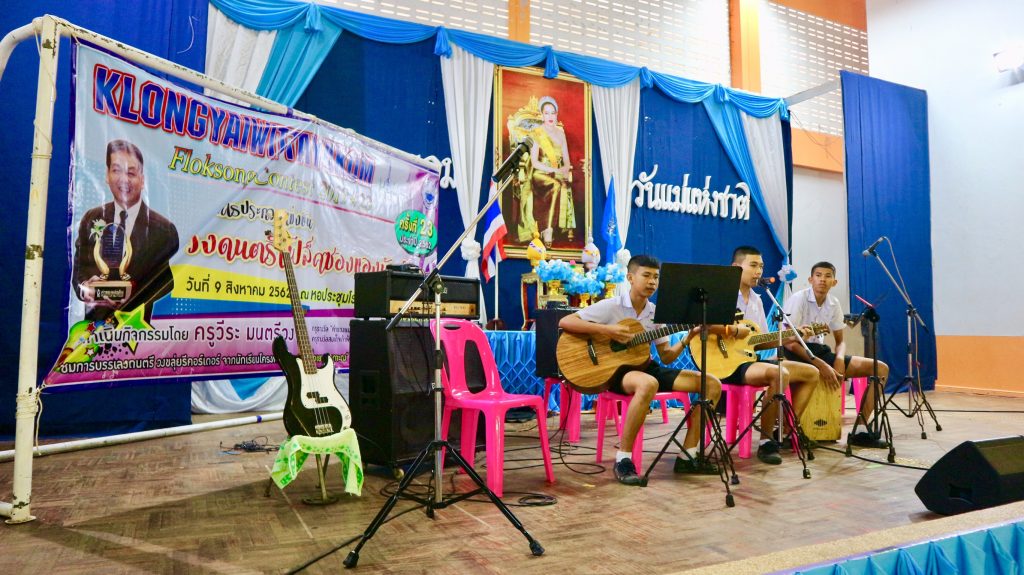 โดยมีการเข้าประกวดแข่งขันวงดนตรีโฟล็คซอง จํานวน 6 วง ในการเข้าการแข่งขันการประกวดวงดนตรีโฟล็คซองในระดับต่างๆในรอบชิงชนะเลิศ 6 วง จาก 11 วง โดยมีผู้ให้การสนับสนุนในการแข่งขันดนตรีโฟล็คซองในครั้งนี้ เพื่อเด็กและเยาวชนในการศึกษาต่อ โดยมีนางสาวเบญจวรรณ อ่านเปรื่อง อดีตผู้ว่าราชการจังหวัดตราด, นายอาภากร เจริญผล นายก อบต.คลองใหญ่, นายกฤษฎา พึ่งประยูร เลขานุการนายก อบต., นายธนวุฒิ ธนากิจ กํานันตําบลคลองใหญ่, ลูกพลอย ศนนธร จงประกอบกิจ, ลูกปู ทิวาภร อํานวยศิลป์ และพี่ปั่น ไพบูลย์เกียรติ เขียวแก้ว รวมทั้งทุกๆท่านที่ร่วมกันเป็นรางวัลมอบให้เด็กและเยาวชนนักเรียนที่ชนะการประกวดวงดนตรีโฟล็คซองในวันนี้ ทั้งหมด 6 วง ชนะเลิศ มีทั้งวงดนตรีจากวิทยาลัยเกาะกง และวงดนตรีโรงเรียนคลองใหญ่วิทยาคมเข้าร่วม เป็นการเชื่อมโยงกับประเทศเพื่อนบ้านและให้การสนับสนุนในด้านการศึกษาระหว่างไทย-กัมพูชา จึงได้จัดกิจกรรมดีๆในวันแม่แห่งชาติขึ้น