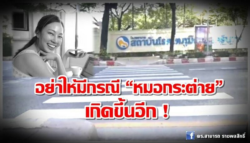 ผมขอเรียกร้องให้ผู้มีหน้าเกี่ยวข้องในการรักษาความปลอดภัยให้กับคนข้ามทางม้าลาย เร่งพิจารณาดำเนินการตามข้อเสนอข้างต้น และที่สำคัญ ต้องถือว่ากรณีหมอกระต่ายเป็นบทเรียนที่ประเมินค่าไม่ได้ อย่าปล่อยให้เป็นไฟไหม้ฟางที่จะจางหายไปกับกาลเวลา รีบลงมือตั้งแต่วันนี้เถอะครับ !