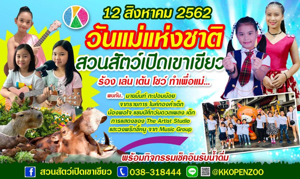 นายอรรถพร ศรีเหรัญ ผู้อำนวยการสวนสัตว์เปิดเขาเขียว เปิดเผยว่า สวนสัตว์เปิดเขาเขียวจ.ชลบุรี จัดกิจกรรมฉลองวันแม่แห่งชาติ ในวันจันทร์ ที่ 12 สิงหาคม 2562 วันเฉลิมพระชนมพรรษา สมเด็จพระนางเจ้าสิริกิติ์ พระบรมราชินีนาถ พระบรมราชชนนีพันปีหลวง ขอเชิญชมนิทรรศการเฉลิมพระเกียรติ และลงนามถวายพระพรชัยมงคล เพื่อแสดงความจงรักภักดี