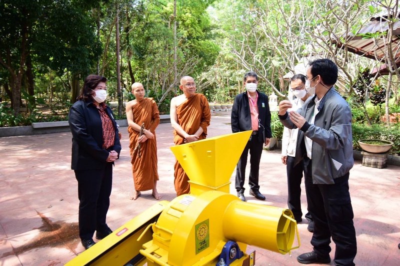 ในโอกาสเดียวกัน ดร.วิภารัตน์ ดีอ่อง ผู้อำนวยการสำนักงานการวิจัยแห่งชาติ (วช.) และคณะผู้พัฒนานวัตกรรมจากมหาวิทยาลัยขอนแก่น มหาวิทยาลัยอุบลราชธานี และห้างหุ้นส่วนจำกัด อาทิตย์ เวนติเลเตอร์ ได้นำนวัตกรรมพร้อมใช้เครื่องย่อยสลายใบไม้ มอบถวายแด่ วัดป่าบุญล้อม อำเภอสว่างวีระวงศ์ จังหวัดอุบลราชธานี โดยมีพระอาจารย์อภิสิทธิ์ โชติมันโต (ท่านปุ้ม) เจ้าอาวาสวัดป่าบุญล้อม เพื่อนำไปใช้แก้ปัญหาในการดูแลพื้นที่และสิ่งแวดล้อมโดยรอบพื้นที่และชุมชน ตามที่วัดป่าบุญล้อมได้ขอรับการสนับสนุนนวัตกรรม